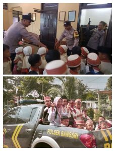 Dalam kunjungan ke Polsek Bangsri Anak-anak di dampingi oleh Bripka Budi, Briptu Agung, Aiptu Mulyadi, Aipda Heru, Aipda Supriyanto, masing-masing polisi menyampaikan Tugas pokok dan fungsi Polisi, di antaranya mengenalkan ruang SPKT, Gudang Senjata, ruang tahanan dan ruang kerja masing – masing petugas yang ada di Polsek Bangsri, yang di sampaikan oleh Aipda Mulyadi.